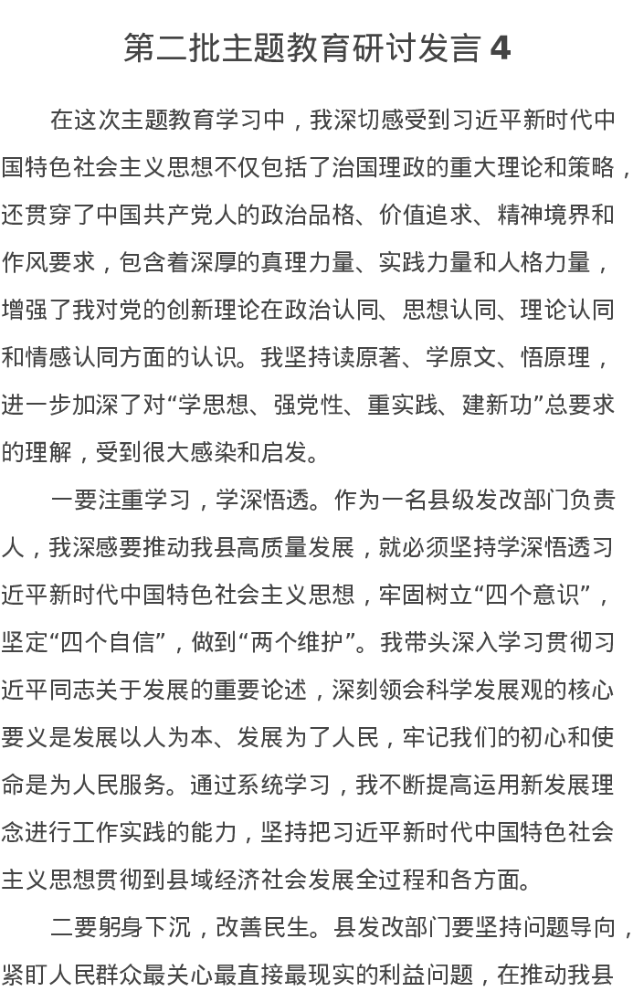 第二批主题教育研讨发言4(特色社会主义思想)