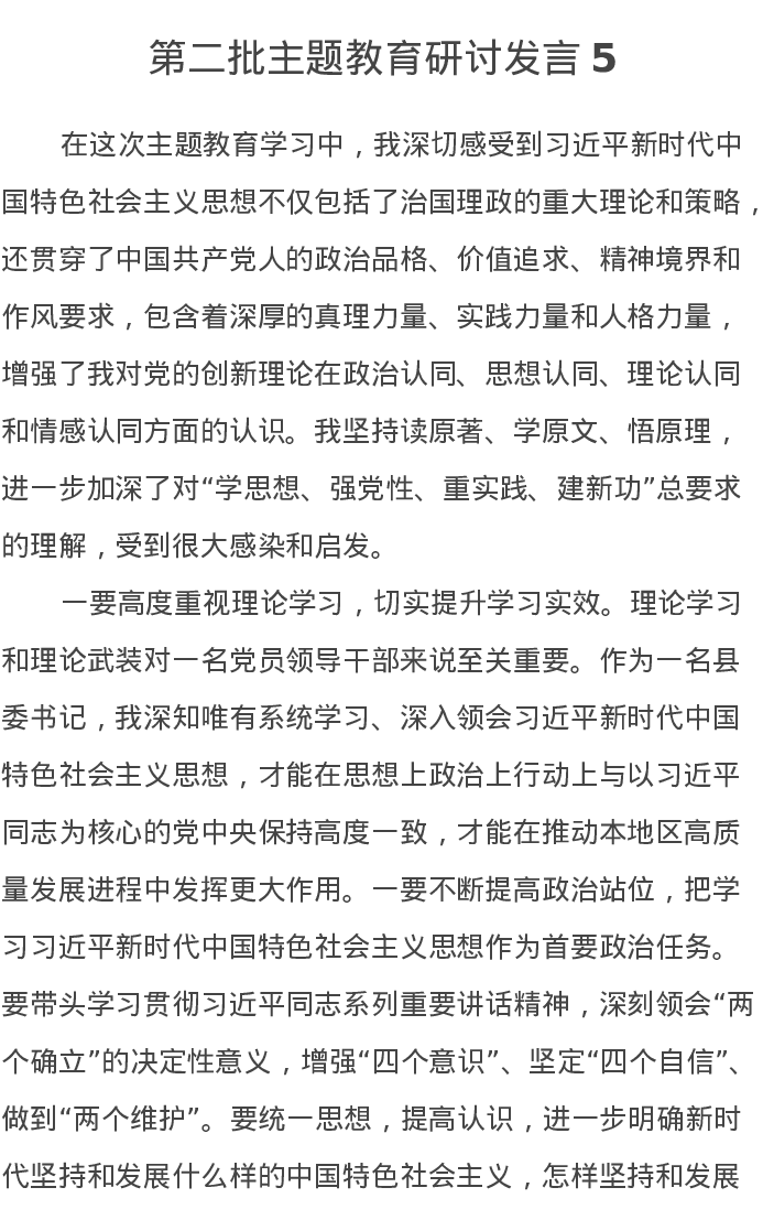 第二批主题教育研讨发言5(特色社会主义思想)