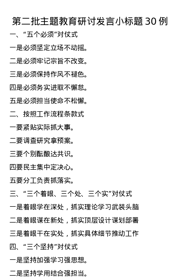 第二批主题教育研讨发言小标题30例(特色社会主义思想)