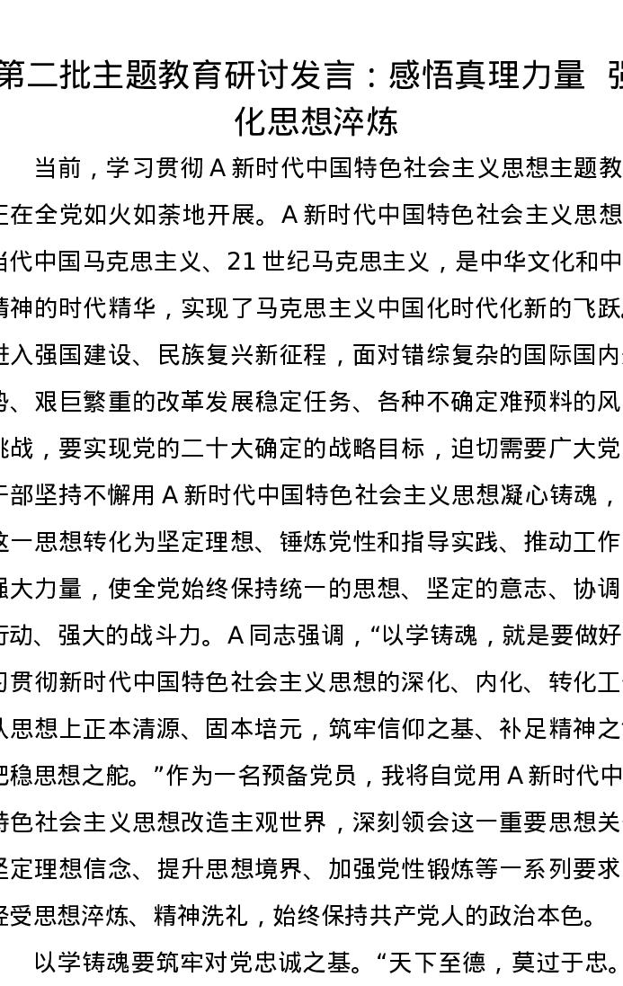 第二批主题教育研讨发言:感悟真理力量 强化思想淬炼(特色社会主义思想)