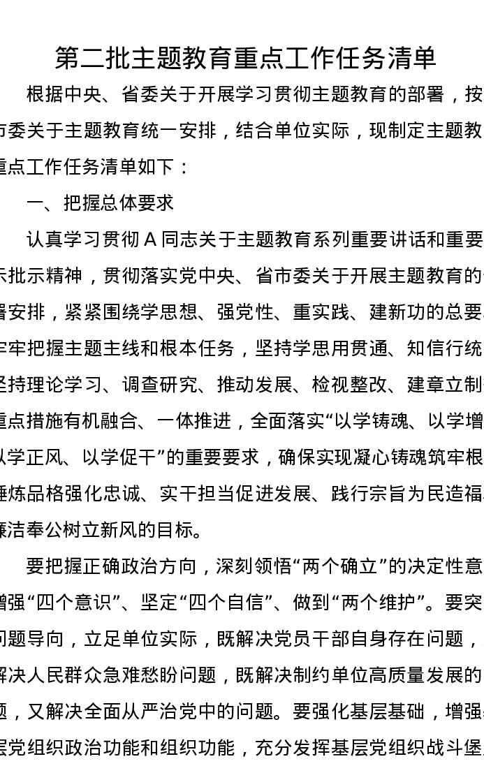 第二批主题教育重点工作任务清单(特色社会主义思想)