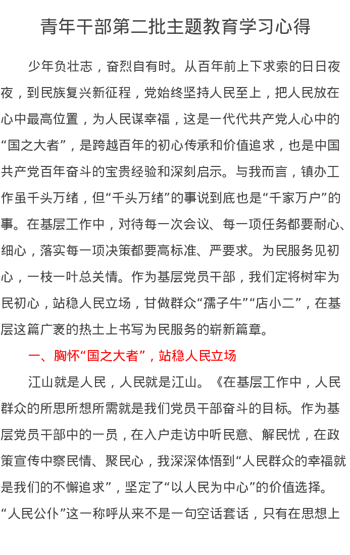 青年干部第二批主题教育学习心得(特色社会主义思想)