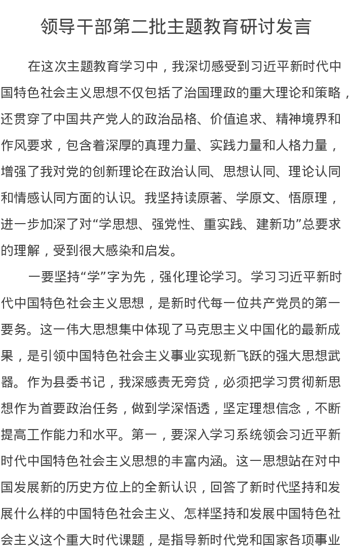 领导干部第二批主题教育研讨发言2(特色社会主义思想)