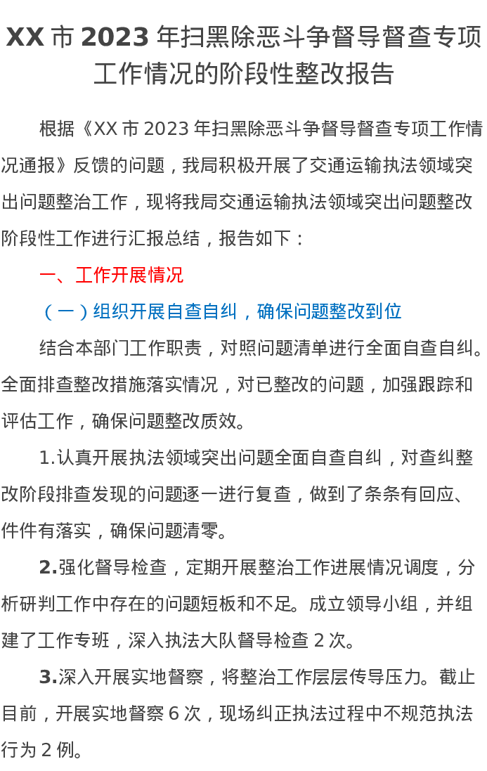 XX市2023年扫黑除恶斗争督导督查专项工作情况的阶段性整改报告