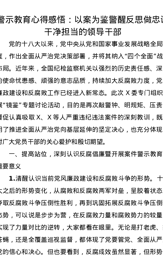 警示教育心得感悟:以案为鉴警醒反思做忠诚干净担当的领导干部