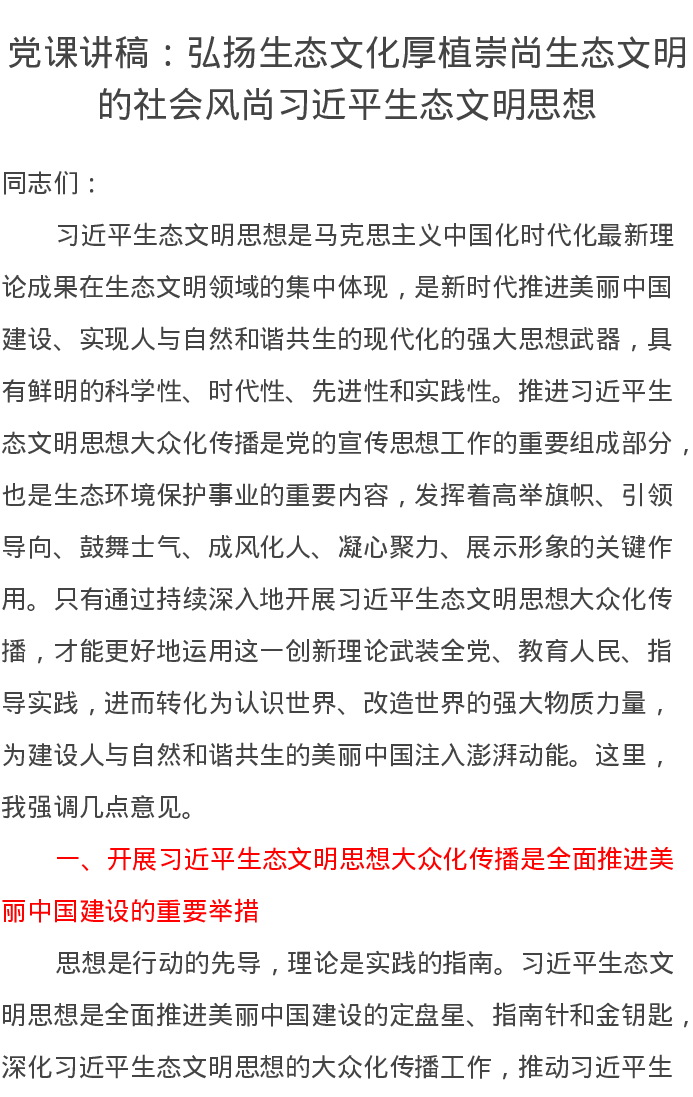 党课讲稿:弘扬生态文化厚植崇尚生态文明的社会风尚习近平生态文明思想