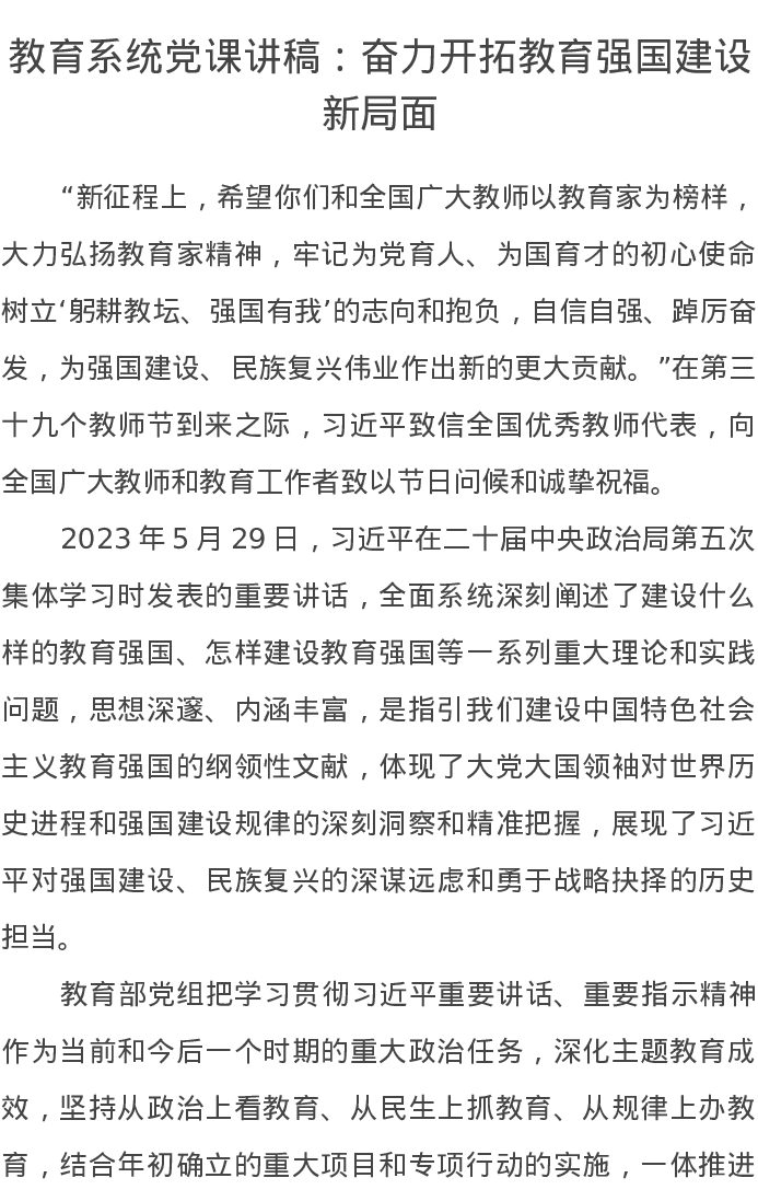 教育系统党课讲稿:奋力开拓教育强国建设新局面