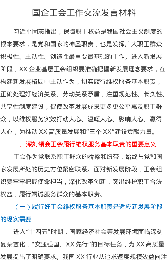 国企工会工作交流发言材料
