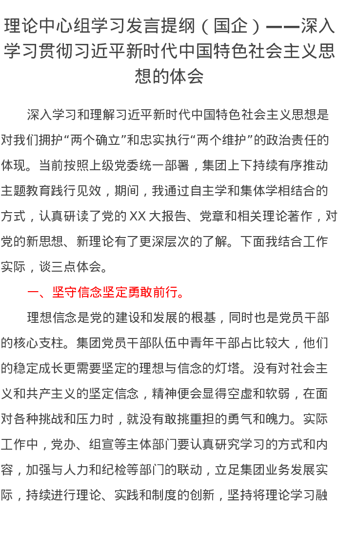 理论中心组学习发言提纲(国企)——深入学习贯彻习近平新时代中国特色社会主义思想的体会