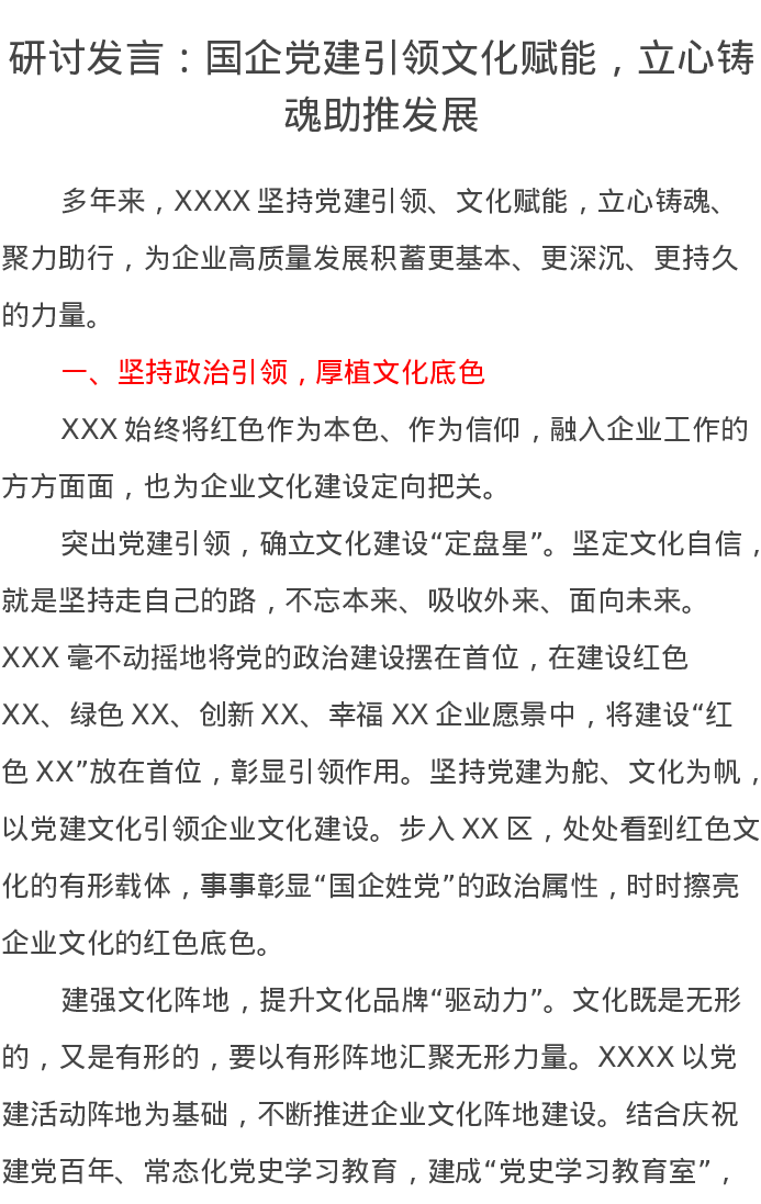 研讨发言:国企党建引领文化赋能,立心铸魂助推发展