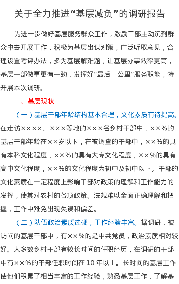 关于全力推进“基层减负”的调研报告