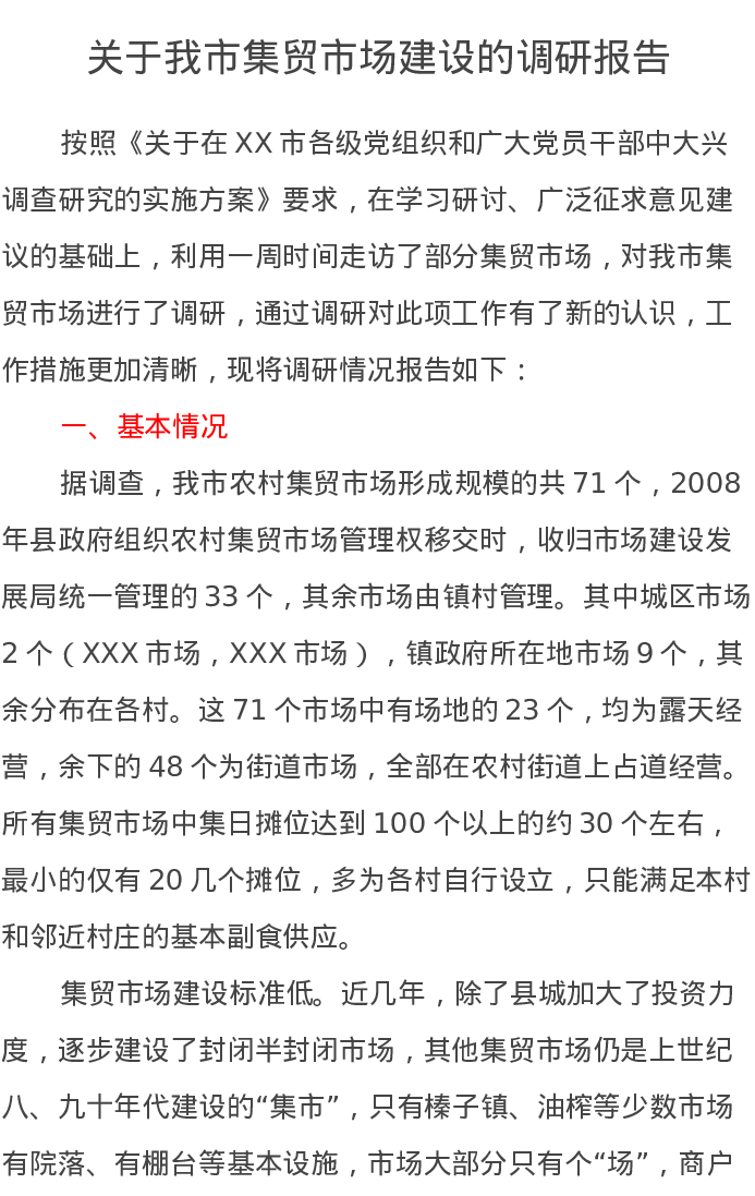 关于我市集贸市场建设的调研报告