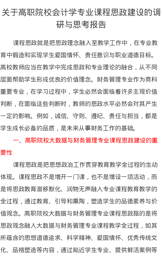 关于高职院校会计学专业课程思政建设的调研与思考报告