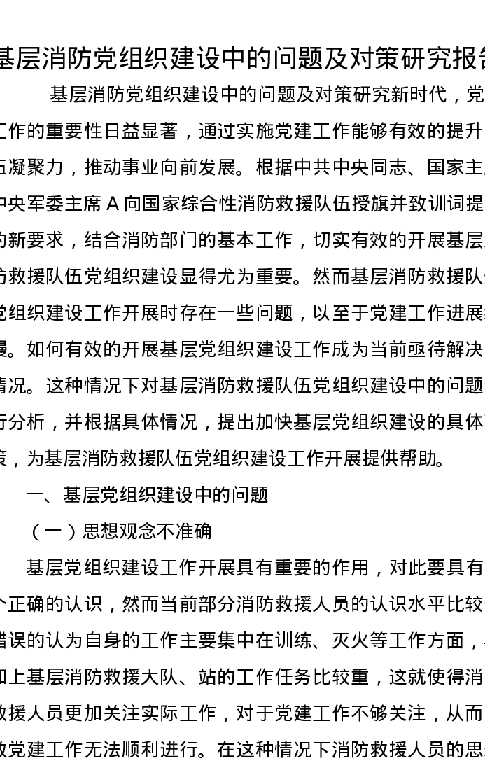 基层消防党组织建设中的问题及对策研究报告