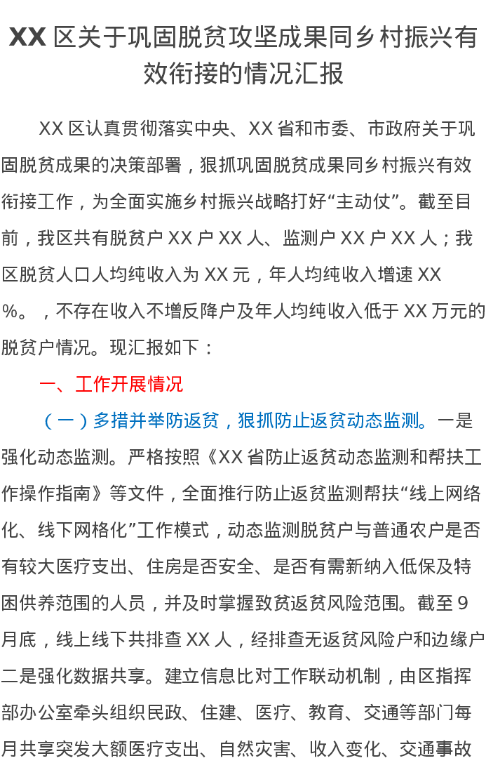 XX区关于巩固脱贫攻坚成果同乡村振兴有效衔接的情况汇报