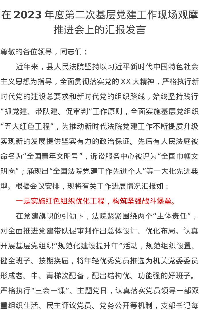 在2023年度第二次基层党建工作现场观摩推进会上的汇报发言