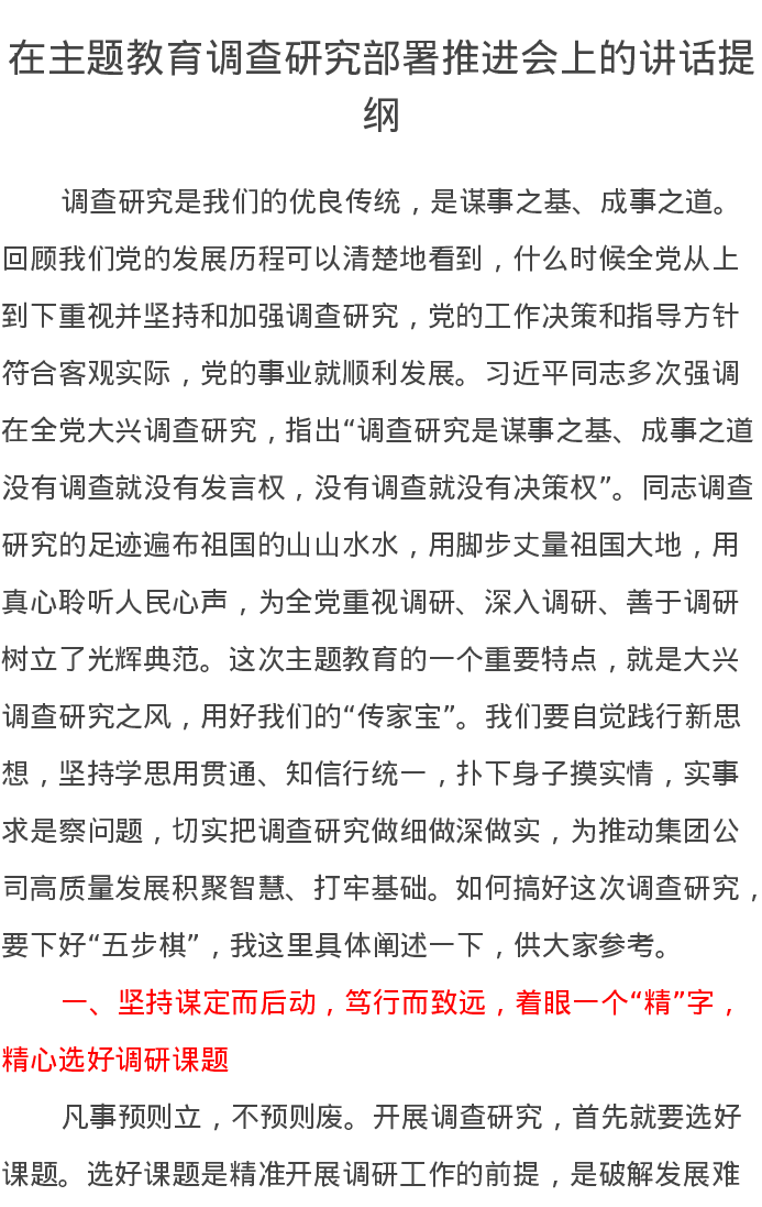 在第二批主题教育调查研究部署推进会上的讲话提纲(特色社会主义思想)