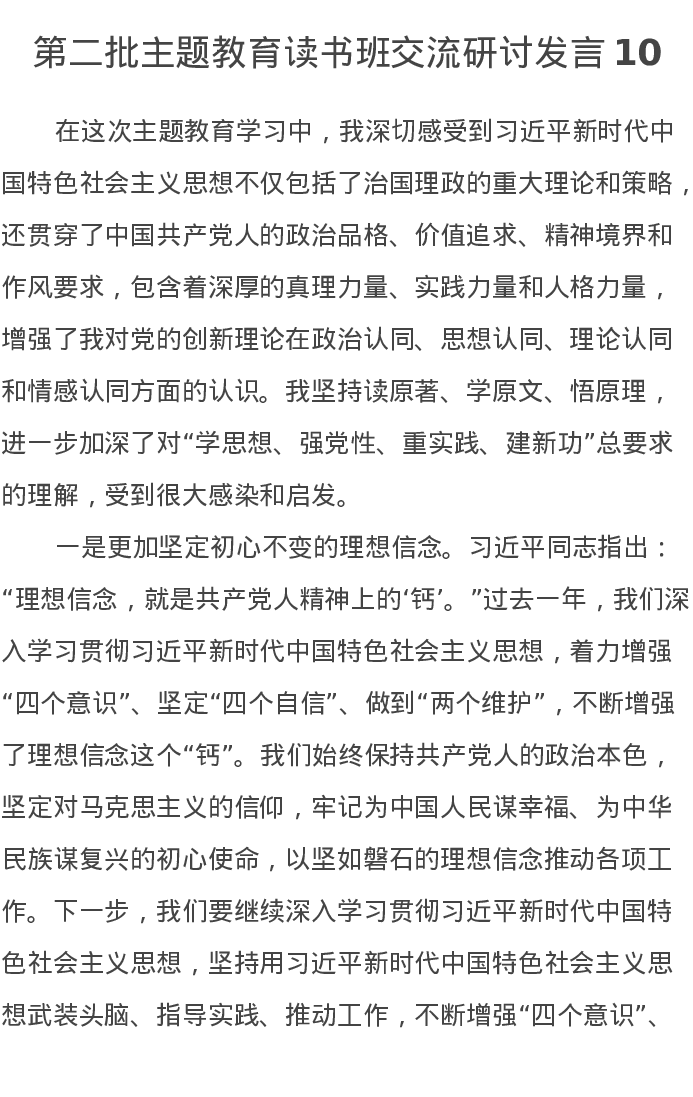 干部第二批主题教育读书班交流研讨发言10(特色社会主义思想)