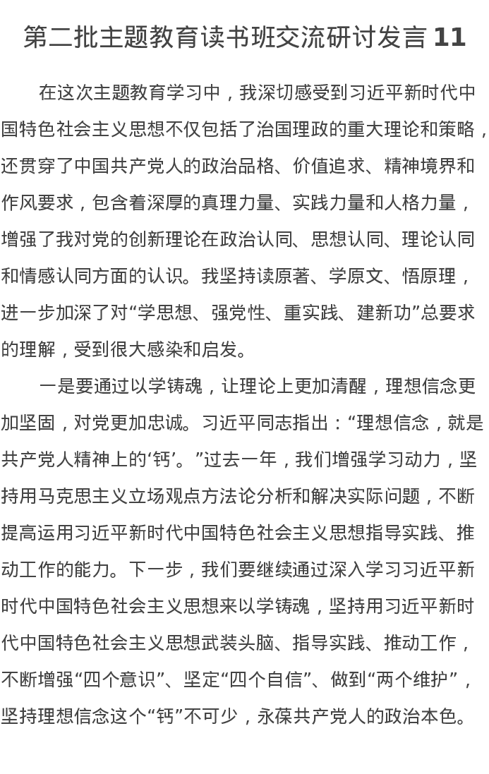 干部第二批主题教育读书班交流研讨发言11(特色社会主义思想)