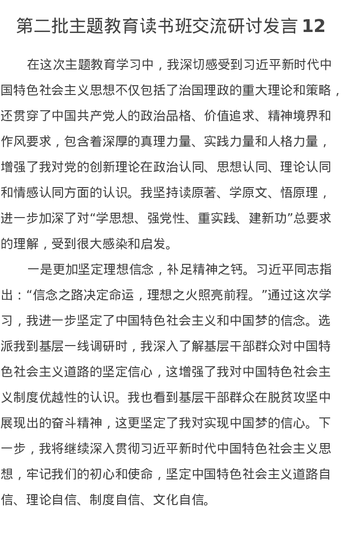 干部第二批主题教育读书班交流研讨发言12(特色社会主义思想)