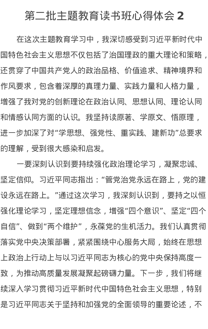 干部第二批主题教育读书班心得体会2(特色社会主义思想)
