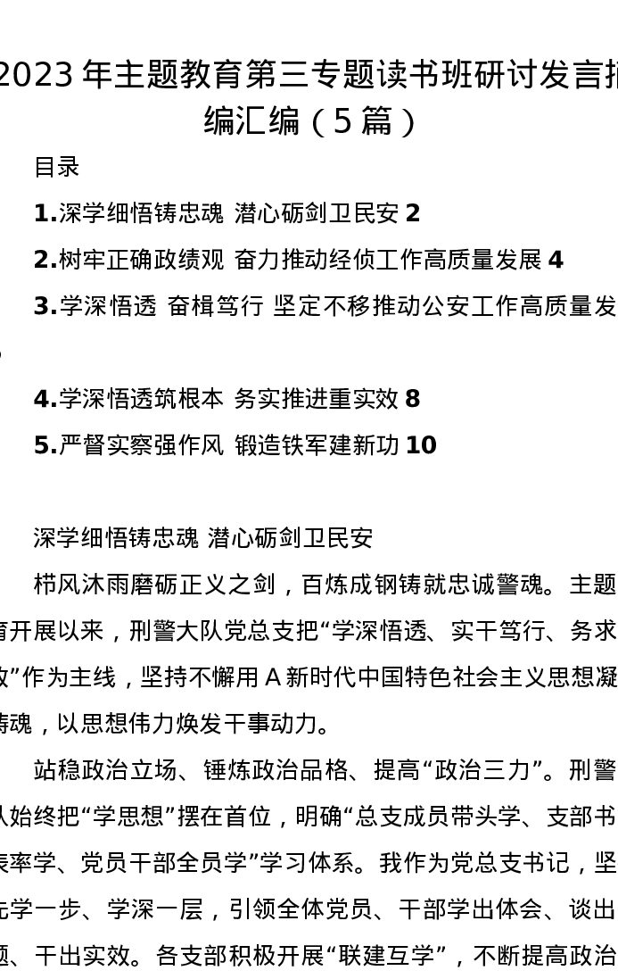 汇编:2023年主题教育第三专题读书班研讨发言摘编5篇(特色社会主义思想)