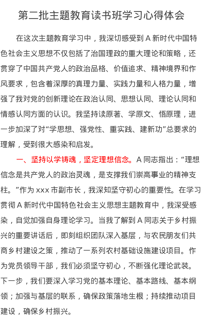 汇编:第二批主题教育读书班学习心得体会4篇(特色社会主义思想)
