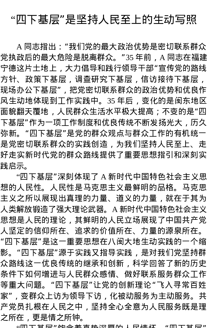 研讨发言:“四下基层”是坚持人民至上的生动写照(特色社会主义思想)主题教育