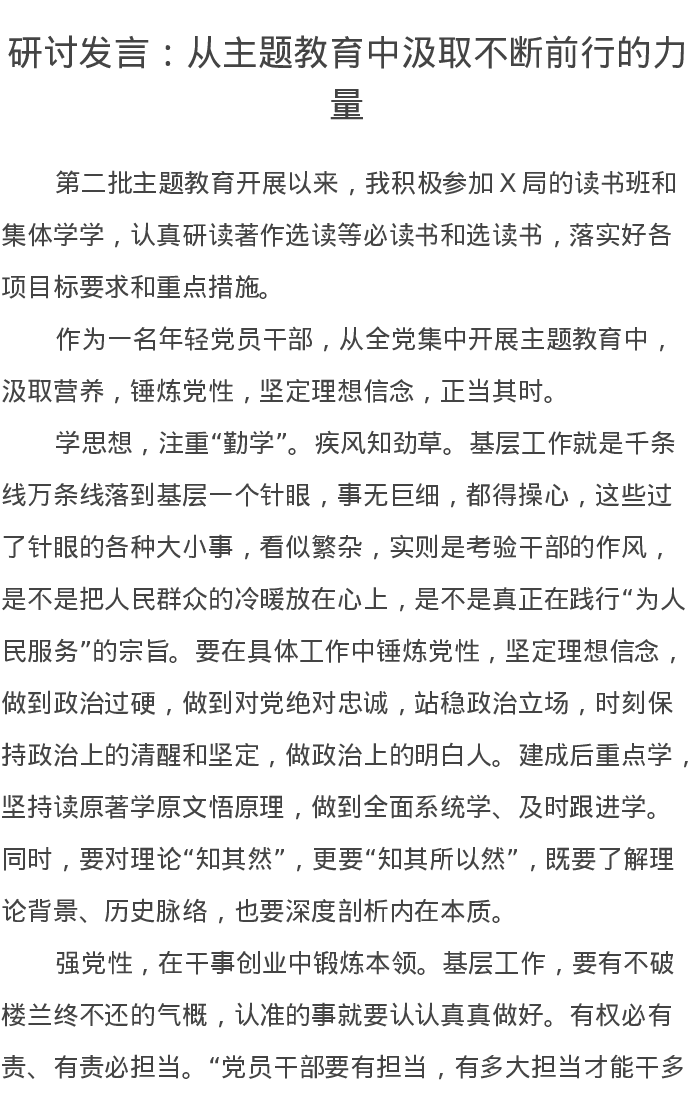 研讨发言:从主题教育中汲取不断前行的力量(特色社会主义思想)