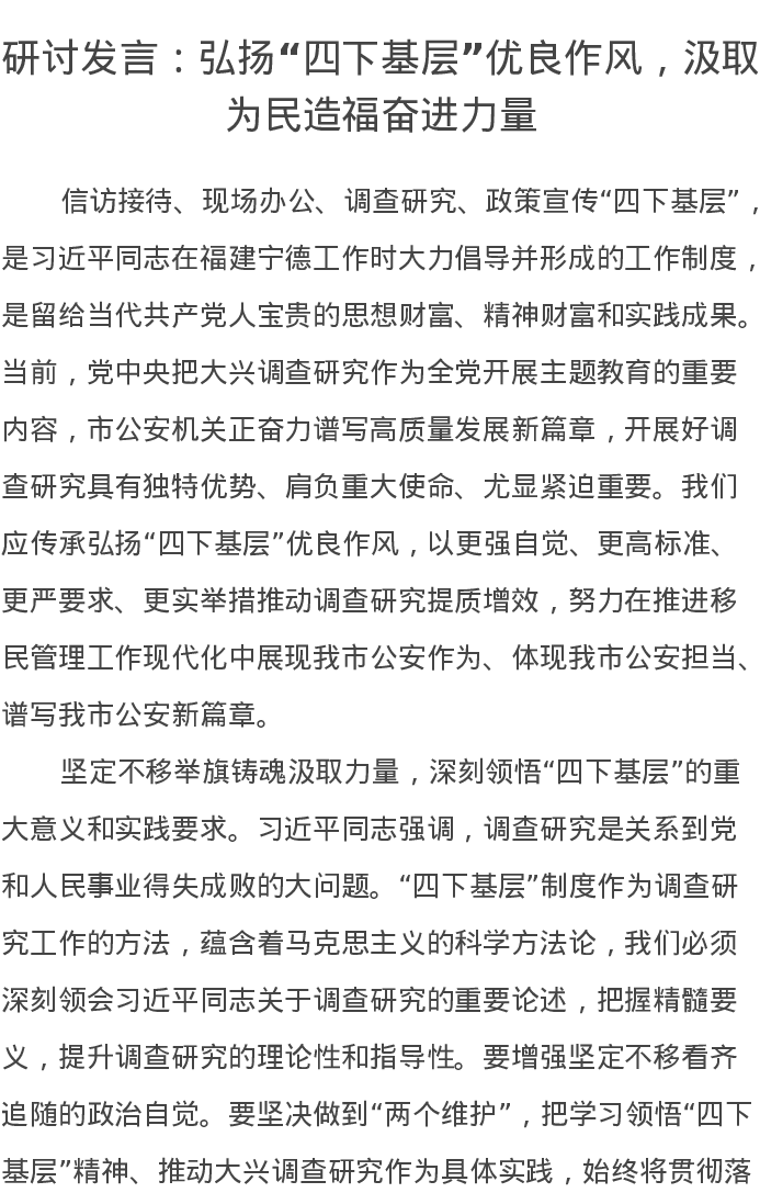 研讨发言:弘扬“四下基层”优良作风,汲取为民造福奋进力量(特色社会主义思想)主题教育