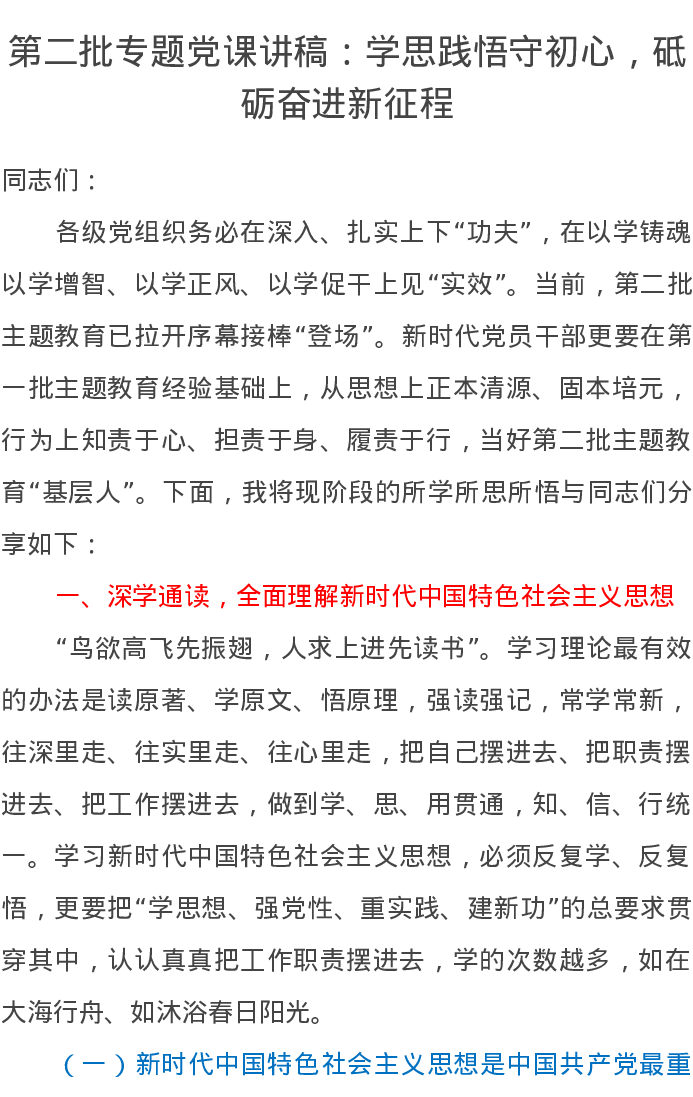 第二批专题党课讲稿:学思践悟守初心,砥砺奋进新征程