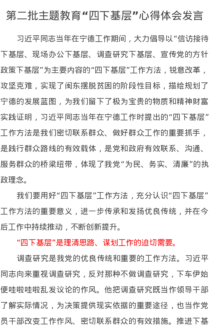 第二批主题教育“四下基层”心得体会发言(特色社会主义思想)