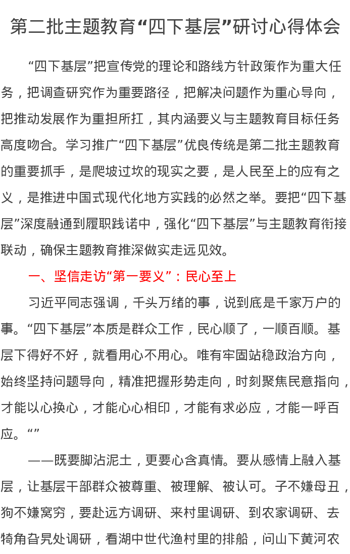 第二批主题教育“四下基层”研讨心得体会(特色社会主义思想)