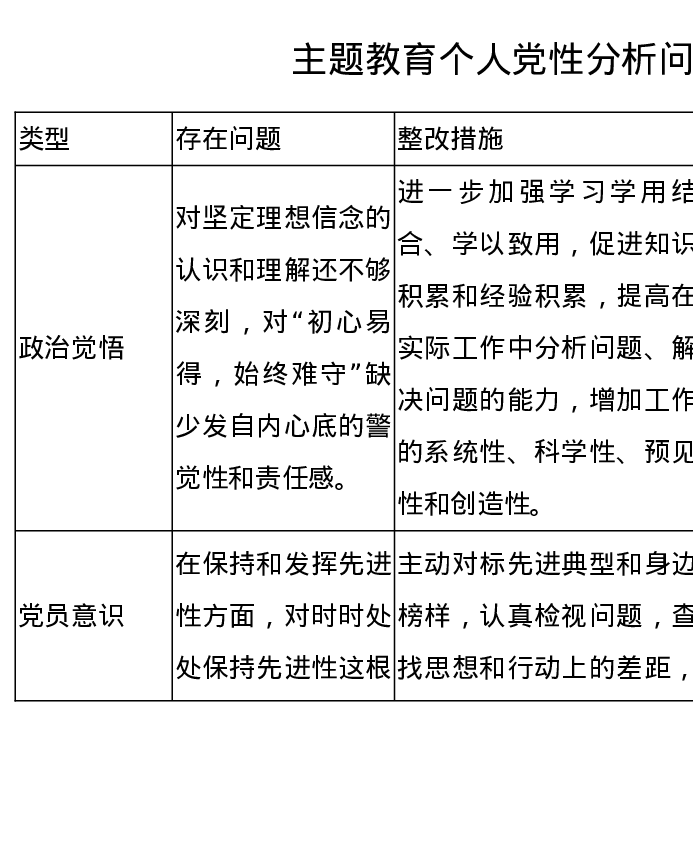 第二批主题教育个人党性分析问题清单+个人学习计划(特色社会主义思想)