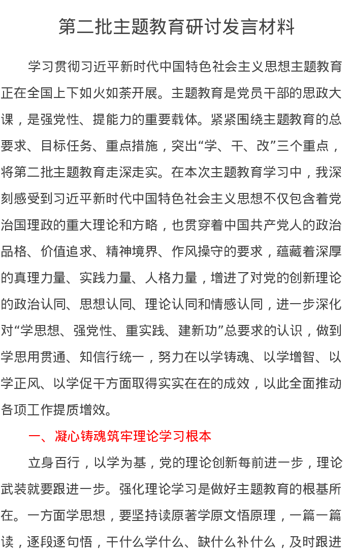 第二批主题教育研讨发言材料(特色社会主义思想)