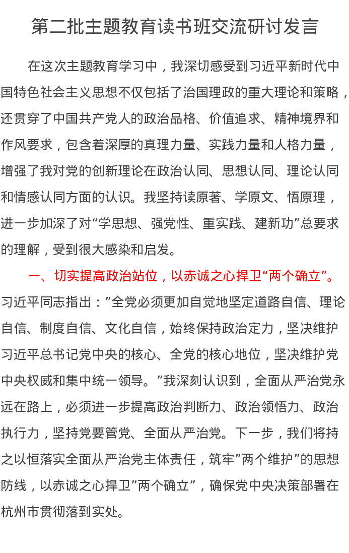 第二批主题教育读书班交流研讨发言7(特色社会主义思想)