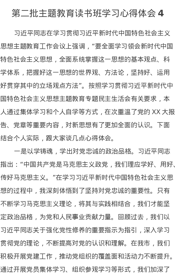 第二批主题教育读书班学习心得体会4(特色社会主义思想)