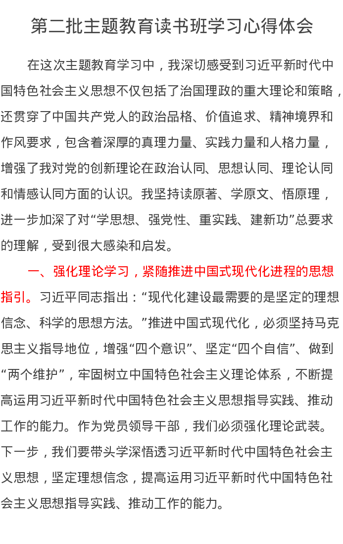 第二批主题教育读书班学习心得体会7(特色社会主义思想)
