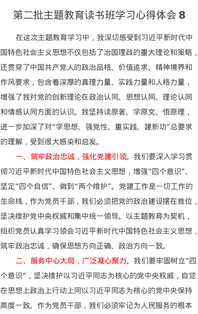第二批主题教育读书班学习心得体会8(特色社会主义思想)