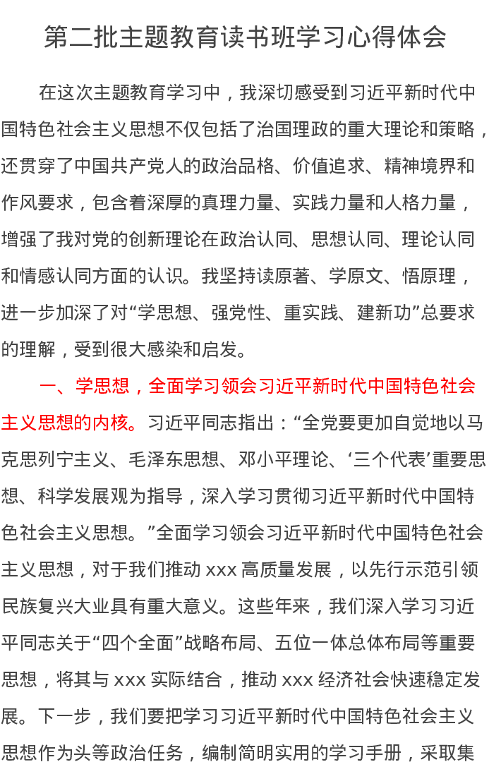 第二批主题教育读书班学习心得体会9(特色社会主义思想)