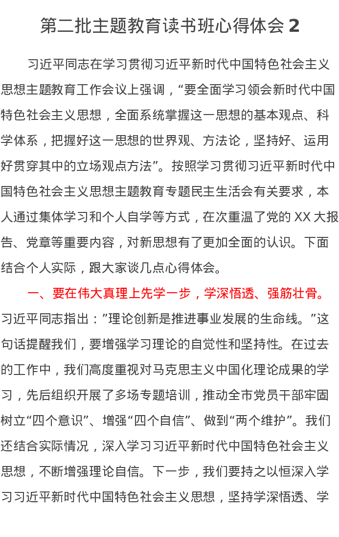 第二批主题教育读书班心得体会2(特色社会主义思想)