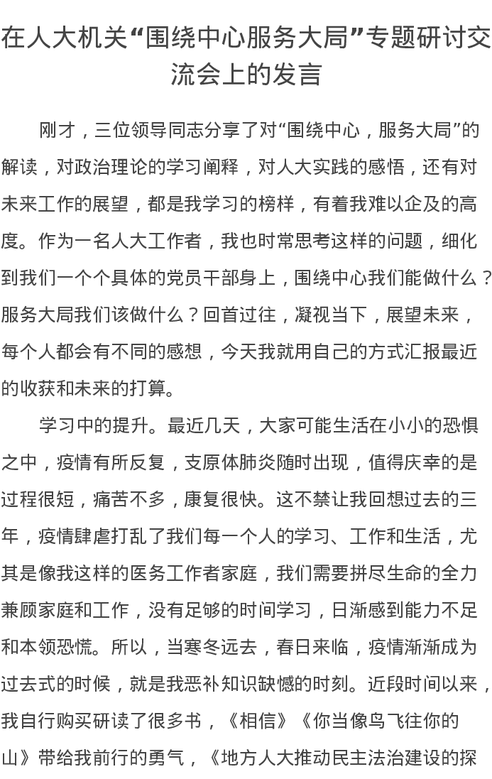在人大机关“围绕中心服务大局”专题研讨交流会上的发言