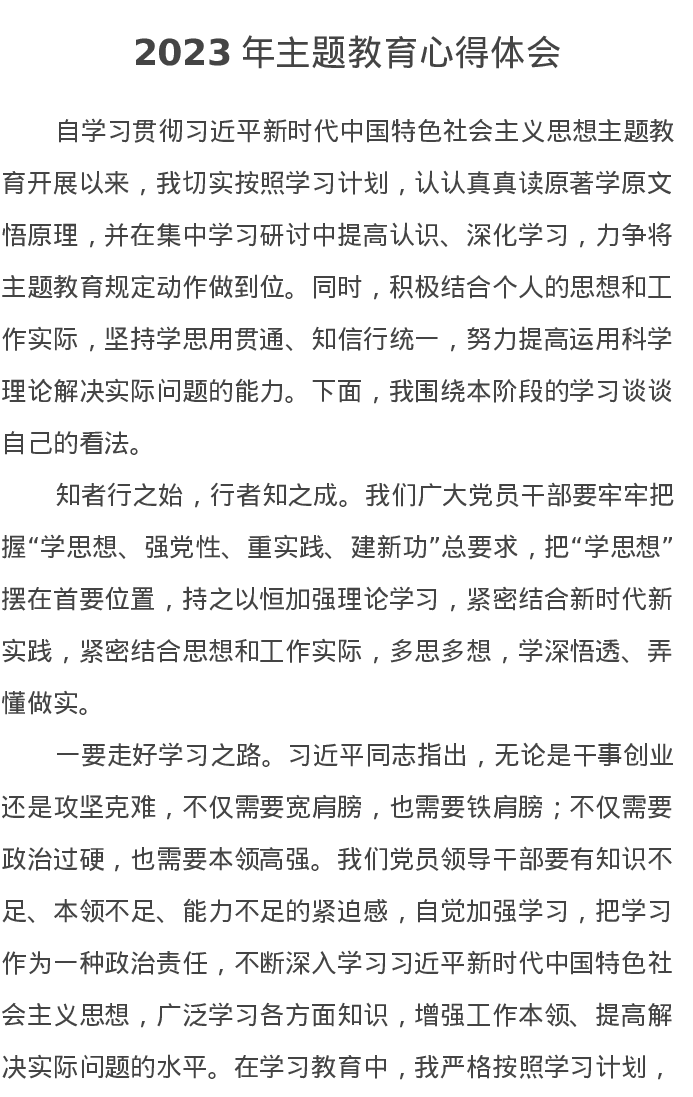 2023年第二批主题教育心得体会1(特色社会主义思想)
