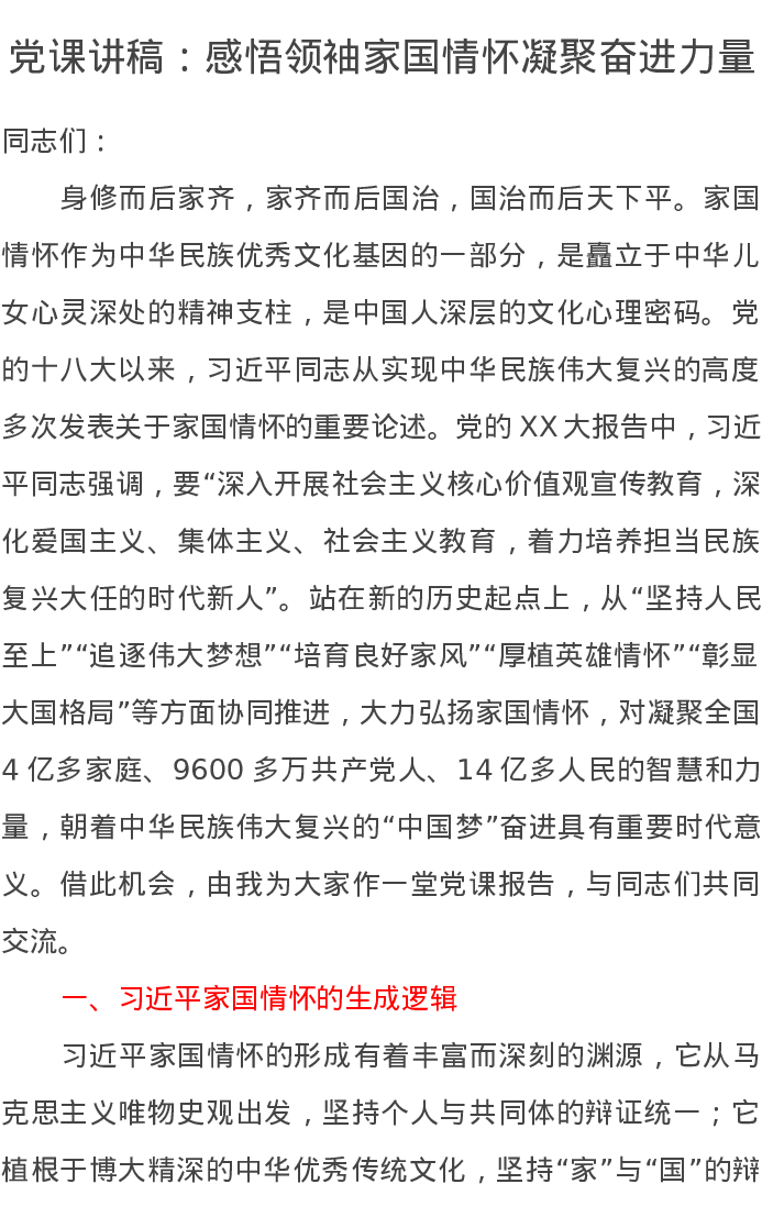 党课讲稿:感悟领袖家国情怀凝聚奋进力量