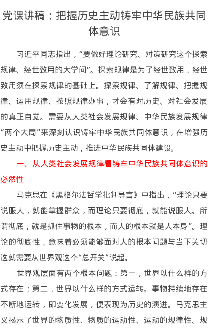 党课讲稿:把握历史主动铸牢中华民族共同体意识