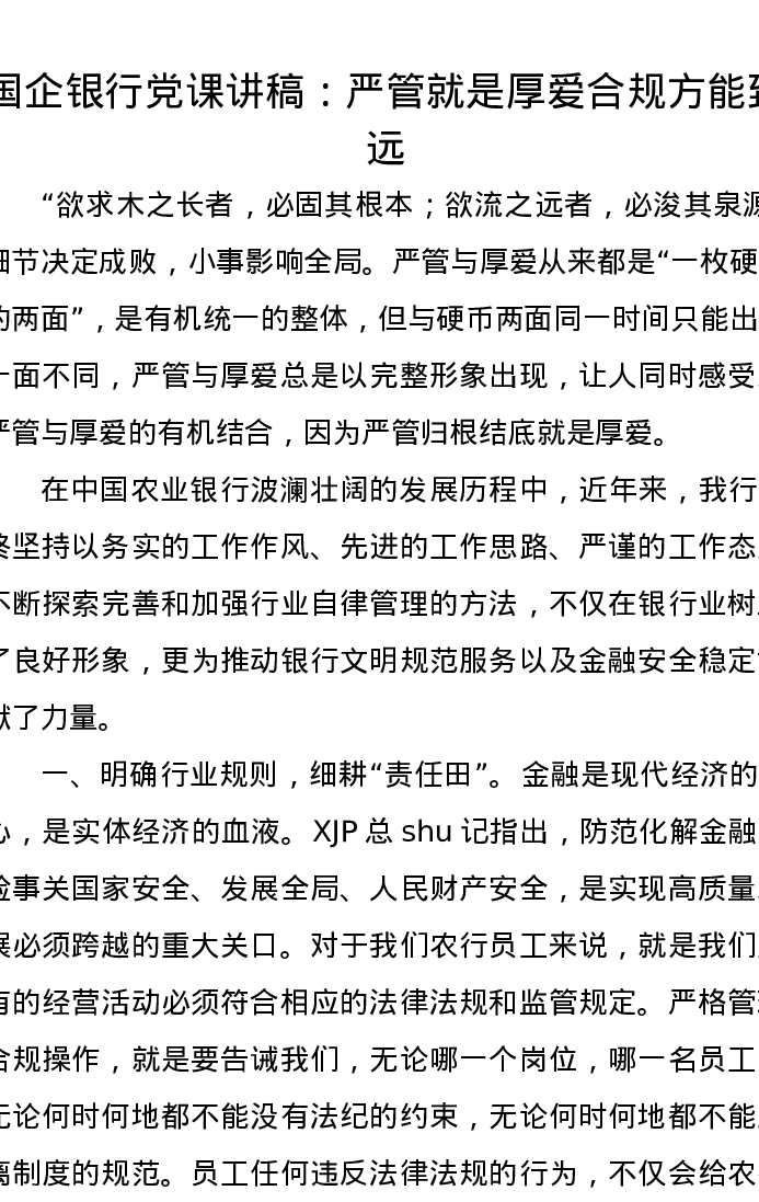国企银行党课讲稿:严管就是厚爱合规方能致远