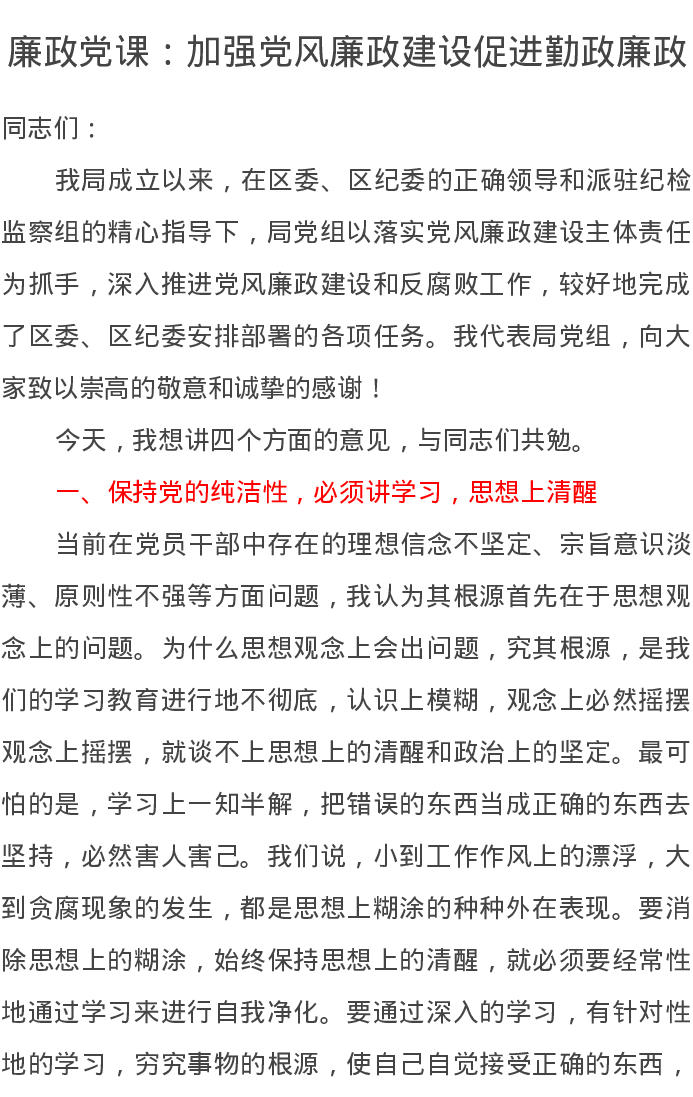 廉政党课讲稿:加强党风廉政建设促进勤政廉政