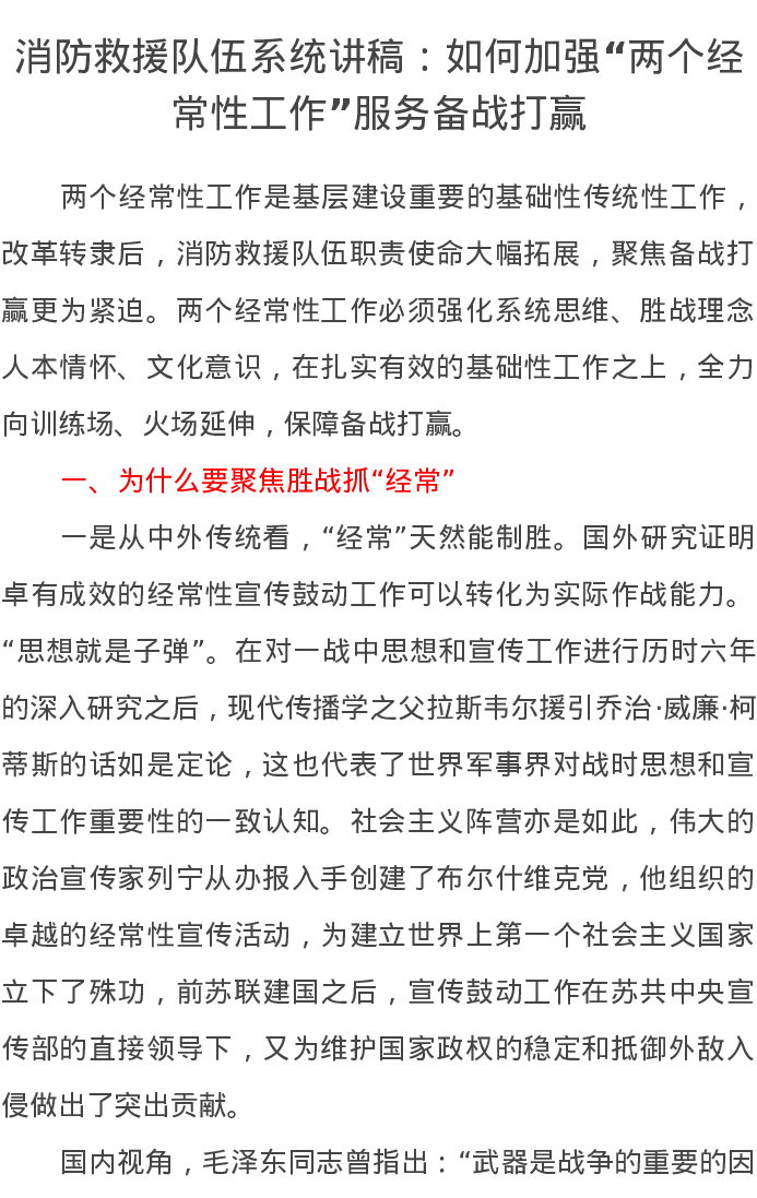 消防救援队伍系统讲稿:如何加强“两个经常性工作”服务备战打赢