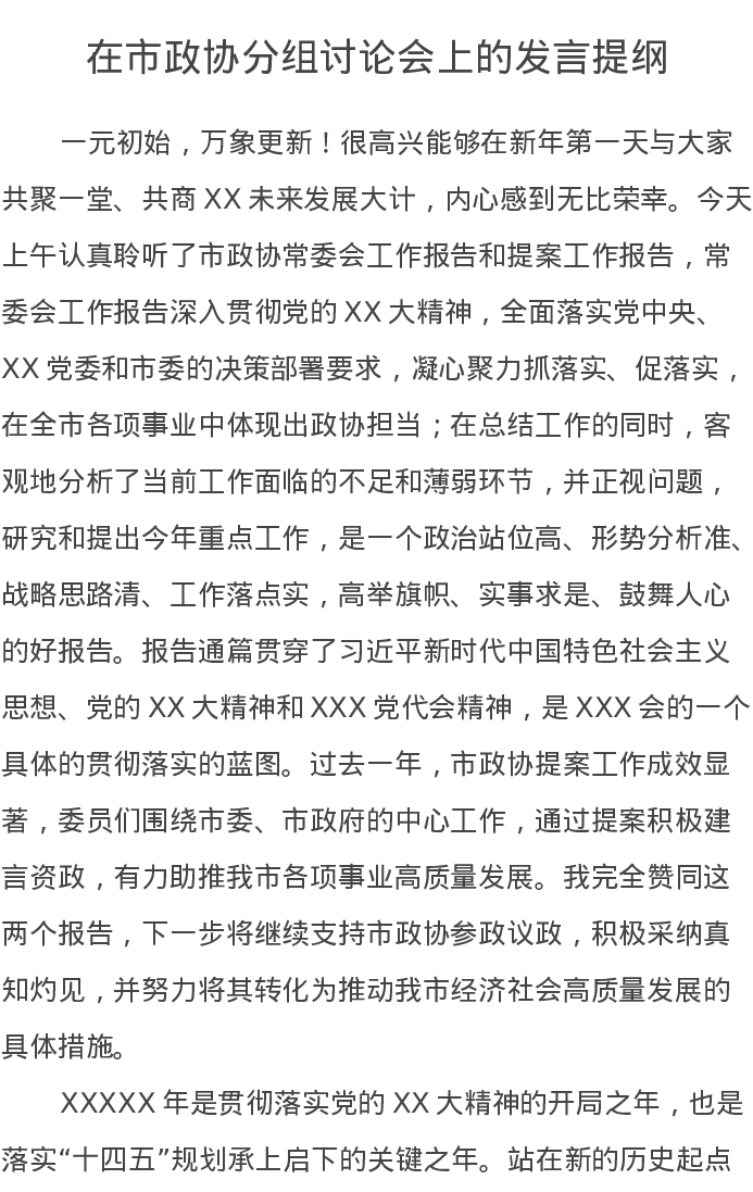 在市政协分组讨论会上的发言提纲