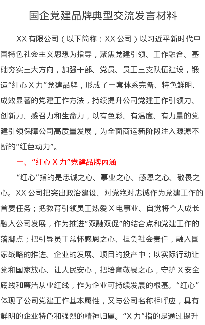 国企党建品牌典型交流发言材料